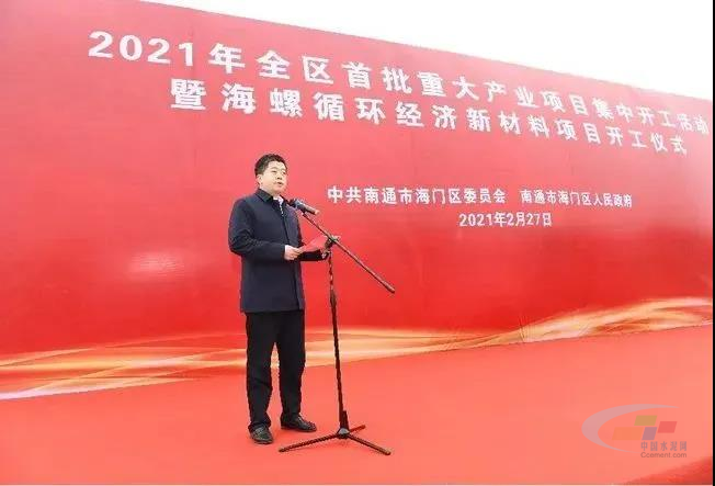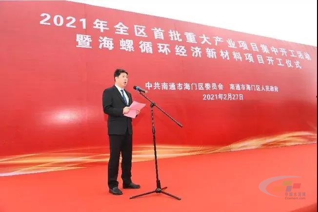 2月27日上午,江蘇省南通市海門區委、區政府在海門港新區海螺新材料項目現場舉行2021年全區首批重大產業項目集中開工活動,動員全區上下堅定必勝信心,激發昂揚斗志,大干快干、埋頭苦干、真抓實干,努力開創施工項目熱火朝天、竣工項目接二連三、儲備項目源源不斷的生動局面,為勇當“兩爭一前列”領跑者提供強勁支撐。